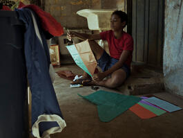BRAZIL. Bahia. Itacaré. 02 August 2020. One of the main occupations since the beginning of the pandemic has been making kites. Caio learned from his brother Gabriel and his kites are so good that he manages to sell some of them, making some extra pocket money.
