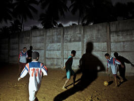 BRAZIL. Bahia. Itacaré. 01 August 2020. One thing that unites all the young people in the little favela where Caio lives is football. Every day, lately only when the rain allows it, young men from all ages gather at the soccer field that a neighbor made for them in the street. The local league was suspended but, despite the absence of a structured competition, the game never stopped. It used to be an escape from reality, a time for leisure that would put a pause in their responsibilities but with not much to do, the daily football game has become almost a tradition in this new uncertain normality.