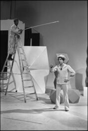 FRANCE. Ile-de-France Region. Paris.19th arrondissement. Studio des Buttes Chaumont. 34-36 rue des Alouettes / 10 rue Carducci. Rehearsal for the shooting of the musical TV show "Deux sur la 2". Roger PIERRE, French actor. Tuesday January 26th, 1971.