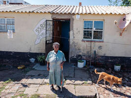 SOUTH AFRICA. Bloemfontein. Silver city. Maria Matile 67, this family arrived here in 1985 and lived under the asbestos roofing There has been a lot of promises to fix the roof but nothing has happened. Avril, 2021.