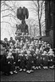 BELGIUM. Binche. 1982. "Gilles" carnival. Annual event since the 15th century, beginning 49 days before Easter, in the towns of Binche and La Louvière. The "Gilles" wearing the traditionnal hats made with ostrich feathers, walk through the town to celebrate the spring revival. Those without "Gilles" costumes wear different ones ( harlequin, Pierrot,...) to ward away evil spirits. Tuesday 23th february, 1982.