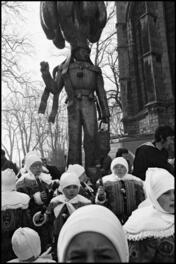 BELGIUM. Binche. 1982. "Gilles" carnival. Annual event since the 15th century, beginning 49 days before Easter, in the towns of Binche and La Louvière. The "Gilles" wearing the traditionnal hats made with ostrich feathers, walk through the town to celebrate the spring revival. Those without "Gilles" costumes wear different ones ( harlequin, Pierrot,...) to ward away evil spirits. Tuesday 23th february, 1982.