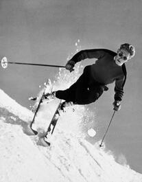 SWITZERLAND. Klosters. 1950. Henri Oreiller skiing.