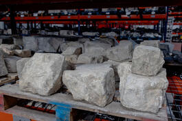 FRANCE. Saint-Witz. January 24, 2022. Storage place for debris (stones, calcined wood and iron) retrieved after the Notre-Dame fire. Research operations on calcined wood are carried out under the direction of Florence Mousset, study engineer responsible for movable archeological assets at the DRAC, and by Olivier Girarddos and Michel Lemoine of the CNRS.