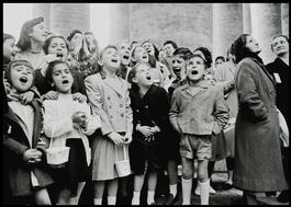 ITALY. St. Peter's Square, Rome. 1954. Children watching the Pope to appear behind a window.