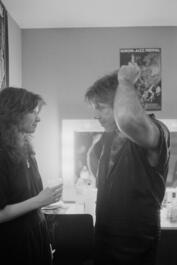 FRANCE. Pays-de-la-Loire region. Sarthe departement. Le Mans. Europa Jazz Festival. Palais des Congrès et de la Culture, place Stalingrad. From left to right : French jazz musicians Isabelle FEUILLEBOIS (vocal) and Christian VANDER (piano, percussions, vocal). Backstage, after the concert. CHRISTIAN VANDER OFFERING "SPECIAL PROJECT". Thursday, April 30th 1987.
