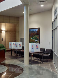 USA. Utah. Price. Carbon County administrative building, minutes before polling opens for the presidential election. 5 November 2024.