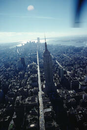 USA. New York City. 1978. Fifth Avenue in full sunlight, photographed from a helicopter.