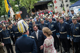 LUXEMBOURG, Schengen. 2016/05. Village at the Luxembourg-German-French border on the Moselle river. On 14.6.1985 the first EU agreement to open European internal borders was signed on the boat "Princess Marie-Astrid". This gave name to the "Schengen Area". On 28.6.2016 the village celebrates the 125 years of the Nassau-Luxembourg dynasty with Hereditary Grand Duke Guillaume and his wife Stéphanie, the Major of Schengen Ben Homan.