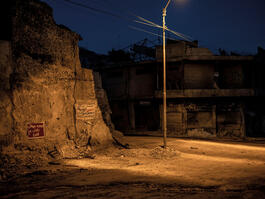 IRAQ. Mosul. Nineveh Province. 2019. Mosul’s Old City at night....