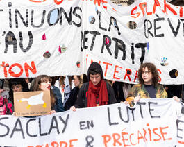 FRANCE. Paris. 13 April 2023. Protesters opposing President Emmanuel Macron's unpopular plan to raise the retirement age to 64.