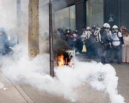 FRANCE. Paris. 13 April 2023. Protesters opposing President Emmanuel Macron's unpopular plan to raise the retirement age to 64.