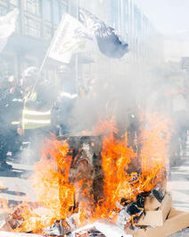 FRANCE. Paris. 13 April 2023. Protesters opposing President Emmanuel Macron's unpopular plan to raise the retirement age to 64.