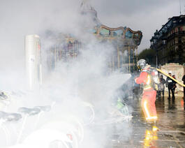 FRANCE. Paris. 13 April 2023. Protesters opposing President Emmanuel Macron's unpopular plan to raise the retirement age to 64.