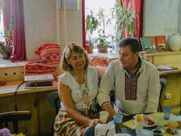 Gathering of Ukrainian diaspora in Moscow. Tanja from Ukraine with her Russian husband Stanislav.
