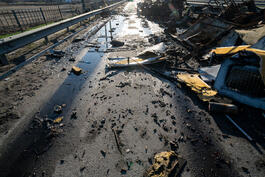 UKRAINE. Kyiv region. 8 April 2022. Debris from destroyed Russian...