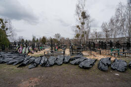 Cemetery with body bags of recent exhumations left on ground since there is not electricity therefore no freezers in the morgues.