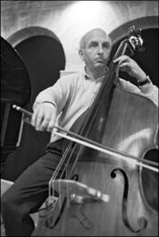 FRANCE. Aquitaine region. Gironde department. Bordeaux. Halle des Chartrons. 2nd edition of the Jazz Festival. The French jazz musician Francois MECHALI (double bass). During the rehearsal and soundcheck for the evening concert in 2nd part. LARRY SCHNEIDER QUARTET. Tuesday 12th November, 2002.