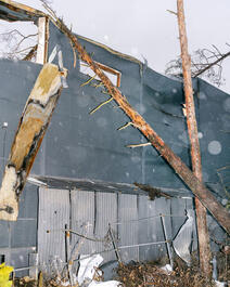 UKRAINE. Hostomel. 17 January 2023. Shopping mall destroyed by Russian army in the first days of war. It's been almost a year since Russia fully invaded Ukraine. The suburbs of Kyiv suffered from significant devastation of civilian infrastructure in the first phase of the war. Irpin, Hostomel and Bucha have become a symbol of brutal war crimes committed against civilians by the Russian army. Ukrainians try to reorganize their lives after the withdrawal of the invading troops from the Kyiv region, but a large part of the destroyed residential districts, shopping centers and gas stations still remain abandoned and uninhabited. Many places have become the memorials of heavy fights and victories over the Russian army.