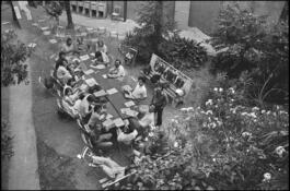 FRANCE. PACA region. Bouche-du-Rhone department. RIP "Rencontres Internationales de la Photographie", annual photographic festival in Arles. Arles. In the schoolyard. The Guy Le Querrec's workshop. Thursday 16th July, 1981.