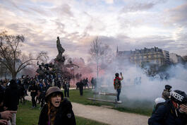 FRANCE. Paris. March 2023. Police fire tear gas at protestors...