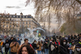 FRANCE. Paris. March 2023. Police fire tear gas at protestors...