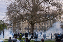 FRANCE. Paris. March 2023. Police fire tear gas at protestors...