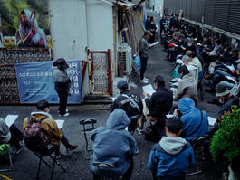 Ms. Miyako Fukuda, owner of the bar “Le Matin” in Golden Gai (street) in Shinjuku where she works alone, as well volunteers once a week at a neighbouring church where she runs a soup kitchen.