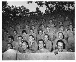 USA. Chapel Hill, North Carolina. 1942. At pre-flight school, future US Navy aviators watch a show.