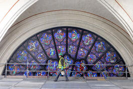 FRANCE. Notre-Dame of Paris'reconstruction, the 21th of november 2022. The west rose colored glass of the cathedral and the stones, cleaned after the fire.