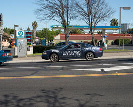 USA. Vallejo, California. 2016. Graffitied car with a tribute...