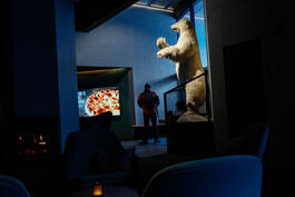 NORWAY, Svalbard, Longyearbyen, 2025/3. Polar bear in hotel lobby....