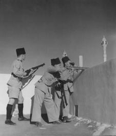 MANDATORY PALESTINE. 1936. Jewish police on the rooftop of a...
