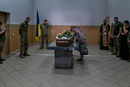 UKRAINE. August 2023. Woman mourning at military funeral. Burial...