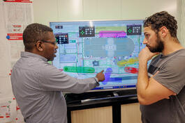 FRANCE, Paris, the 05th of september 2023. Reconstruction of Notre-Dame of Paris' cathedral. Davy, the chief of the coordination of the cranes with one of the crane conductor.