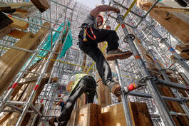 FRANCE, Paris, the 05th of september 2023. Reconstruction of Notre-Dame of Paris' cathedral. Interior of the spire under construction.