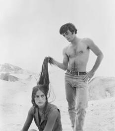 USA. California. 1968. Actors Mark FRECHETTE and Daria HALPRIN during the filming of "Zabriskie Point."