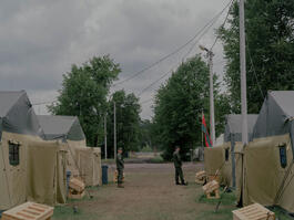 BELARUS. Tsel’. 07 July 2023. Two Belarusian officers at a military base near the town of Asipovichy, Belarus,