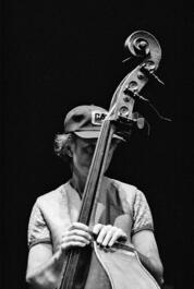 FRANCE. Paris. 4th arrondissement. Theatre de la Ville. 1st edition of the Paris Jazz Festival. US jazz musician Barre PHILIPS (double bass). During the rehearsal and soundcheck for the evening concert at 6:30pm. MUSIC BY. Thursday 30th October, 1980.