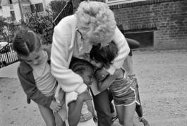 FRANCE. Ile-de-France region. Seine-Saint-Denis department. Pantin. Children's leisure centre. Outing to Saint-Martin-du-Tertre (Val d'Oise department). After snack. Thursday 18th July, 1985.