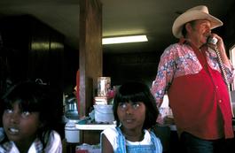 USA. Utah. 1996. Cattle rancher Dell Lefevre and 2 of his 12 adopted children.