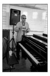 FRANCE. Midi-Pyrénées region. Gers departement. Marciac High School. "Jazz in Marciac" festival. Meeting with US jazz musician Charlie HADEN (double bass) for the presentation of his CD in front of high school students. Thursday, August 5th 2004.