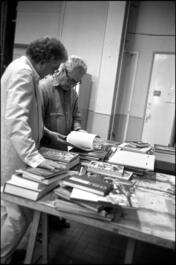 FRANCE. Paris. 18th arrondissement. Magnum annual meeting. Leonard FREED and Elliott ERWITT. Friday 28th June, 2002.