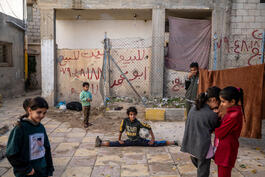 Palestinian children playing on a street in the Talbieh refugee camp, south of Amman.