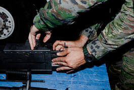 LEBANON. Ebel El Saqi. September 10, 2024. Detail of heavy artillery....
