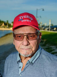 USA. Florida. Palm Beach. September 8, 2024. Odilio Garrido Fernández, a Cuban migrant, spending the afternoons with his wife in fron of Mar-a-Lago, Trump's residence, of whom he is a 100% supporter.