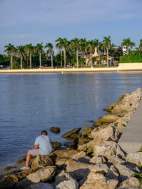 USA. Florida. Palm Beach. September 8, 2024. People fishing in front of Trump's residence in Mar-a-Lago.