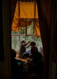 Cleaning ladies take a break in their room at Khoja Obi Garm Sanatorium.