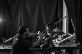 Karam, 17, from Nuseirat Camp in central Gaza, during a physiotherapy session at MSF’s Reconstructive Surgery Hospital in Amman, Jordan. Karam nearly died after his family’s house was leveled by an Israeli airstrike. He suffered severe burns to his face and other areas of his body, and also suffered a serious injury to his arm. He is receiving comprehensive reconstructive surgery and physiotherapy at the MSF hospital in Amman.