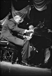 FRANCE. Midi-Pyrenees region. Gers department. Marciac. "Jazz in Marciac" Festival. Canadian jazz musician Oscar PETERSON (piano) and Danish jazz musician NHOP (double bass). During the evening concert at 21:00 in the 2nd part. OSCAR PETERSON. Monday 4th August, 2003.